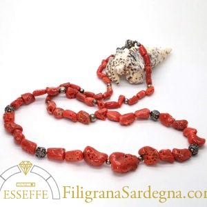 Categoria: collana corallo Lega: argento 925 Peso: 70 gr circa Dimensioni sasso più grande: 2,5 cm per 2 cm circa Lunghezza: 72 cm Pietre: sassi corallo rosso di Sardegna