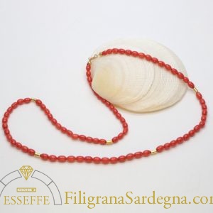 Collana corallo rosso Sardegna a olivini e oro giallo