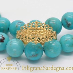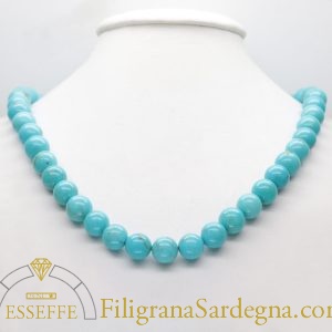 Categoria: collana turchese oro Lega: oro 750 Peso: 44 gr Lunghezza: 42 cm Pietre: turchese naturale Diametro sfere: 9/9,5 mm