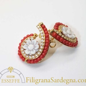 Orecchini con cabochon di corallo e montatura d’argento scolpito