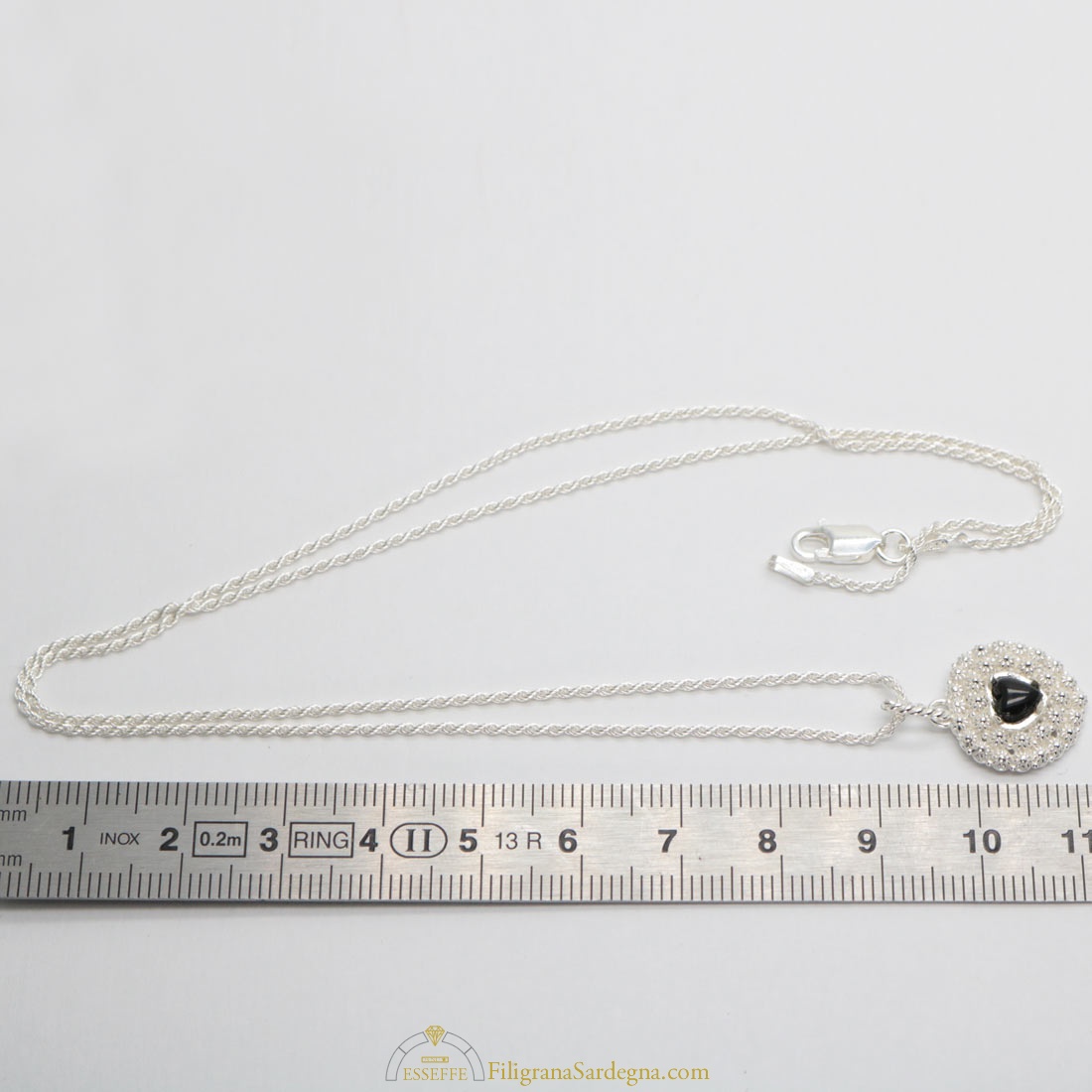 Categoria: ciondolo filigrana Lega: argento 925 Lavorazione: filigrana Lunghezza collana: 40 cm o 45 cm Diametro pintadera: 1,9 cm