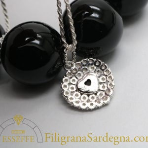 Categoria: ciondolo in filigrana Lega: argento 925 Peso: 9 gr circa Lavorazione: filigrana a giorno Diametro: 2,8 cm