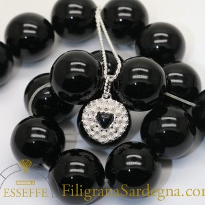 Categoria: ciondolo cocco in filigrana d'argento Lega: argento 800 Lavorazione: filigrana microfusione Diamentro ciondolo: 4 cm circa Pietra: onice da 16 mm Lunghezza collana: 39 cm