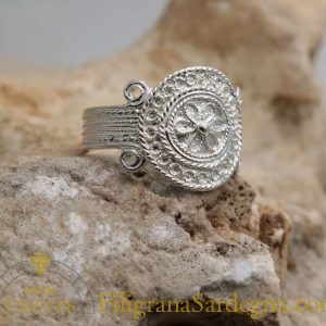 Anello in argento, realizzato a microfusione, riproduzione storica di un anello fenicio-punico in oro risalente al IV secolo a.C ritrovato nella necropoli di Sant’Antioco, da qui il nome di anello di Sant’Antioco.