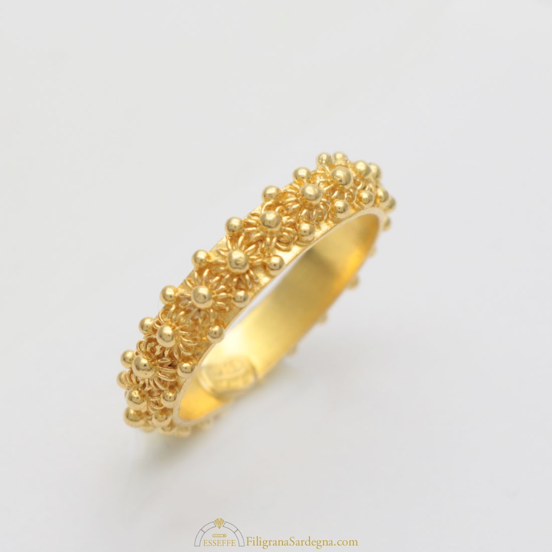 Categoria: fede sarda - anello filigrana oro Lega: oro 750 Lavorazione: nido d'ape Altezza fascia: 3,5 mm