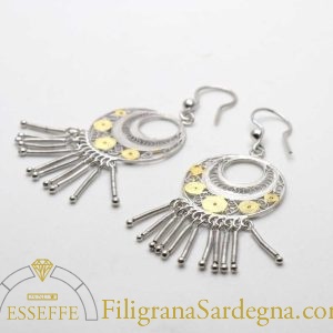 Orecchini pendenti in filigrana bicolore d’argento.
