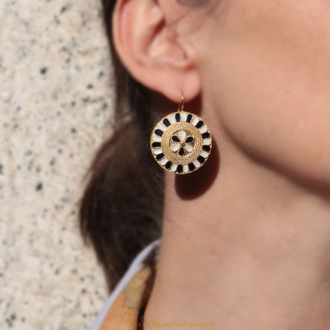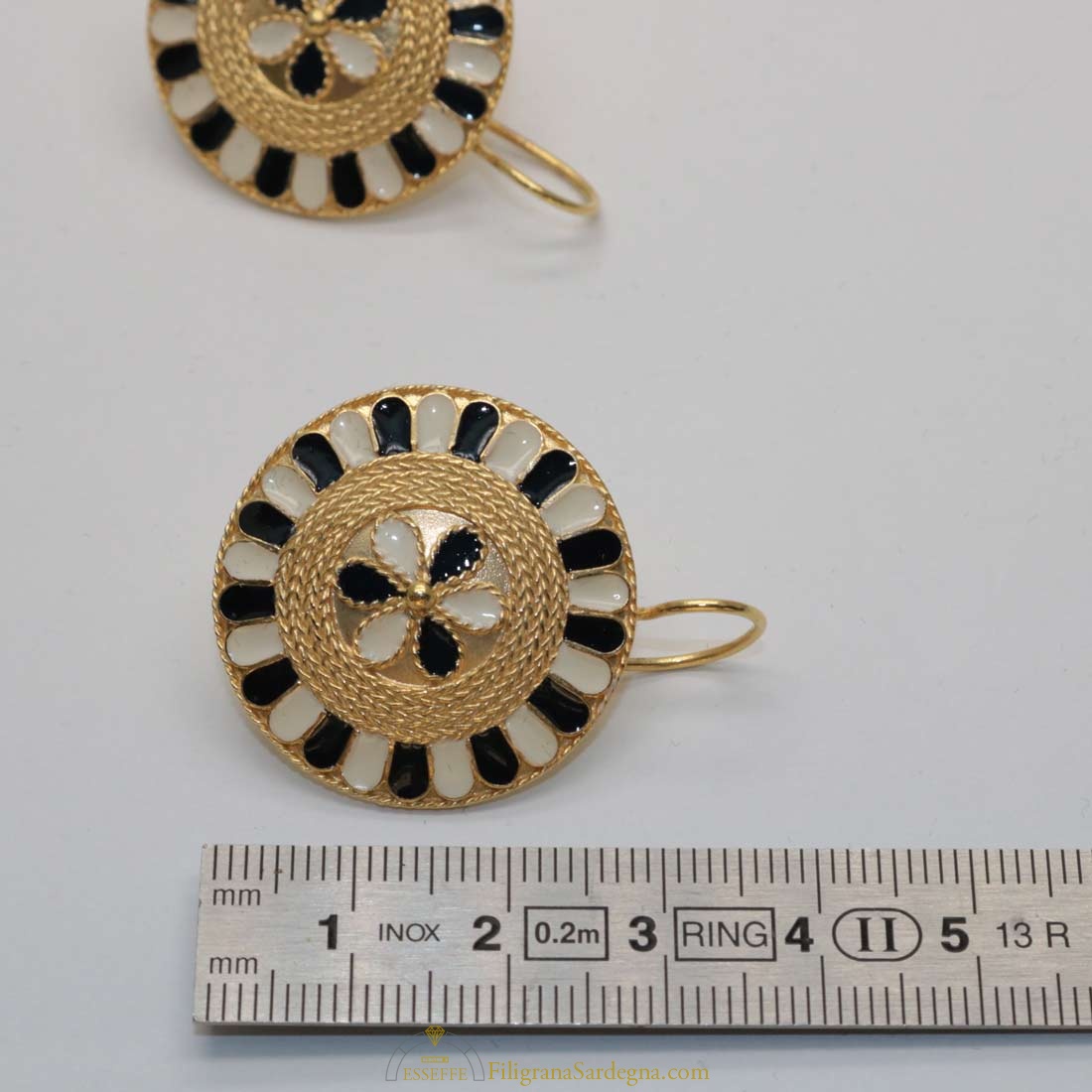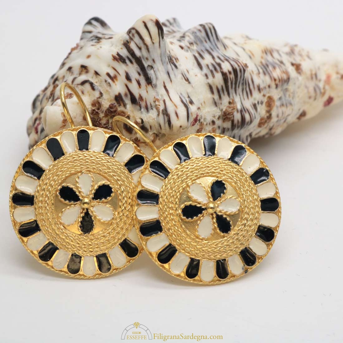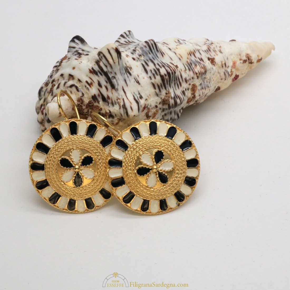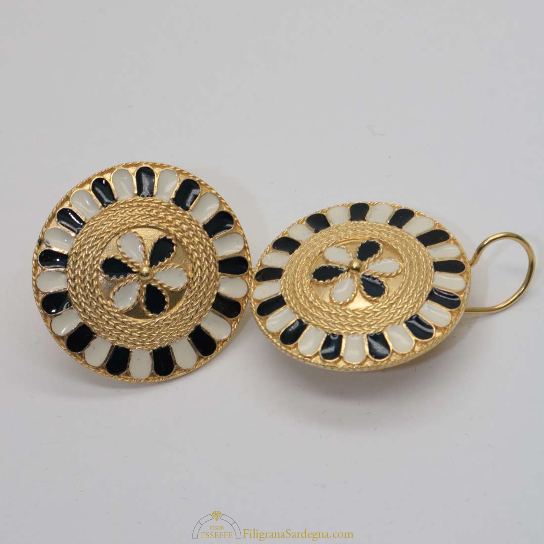 Orecchini a lobo in argento dorato con particolari smaltati.