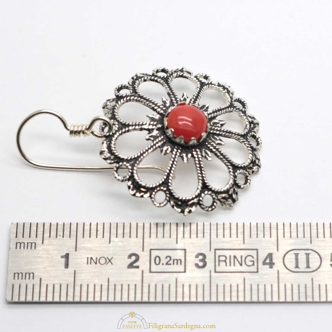 Orecchini pendenti in filigrana brunita e corallo rosso