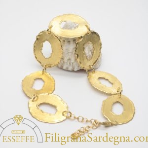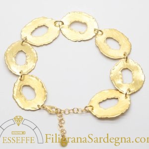 Categoria: bracciale filigrana dorata Lega: argento 925 Lavorazione: filigrana a giorno Dimensioni: 18,5 cm per 1,7 cm