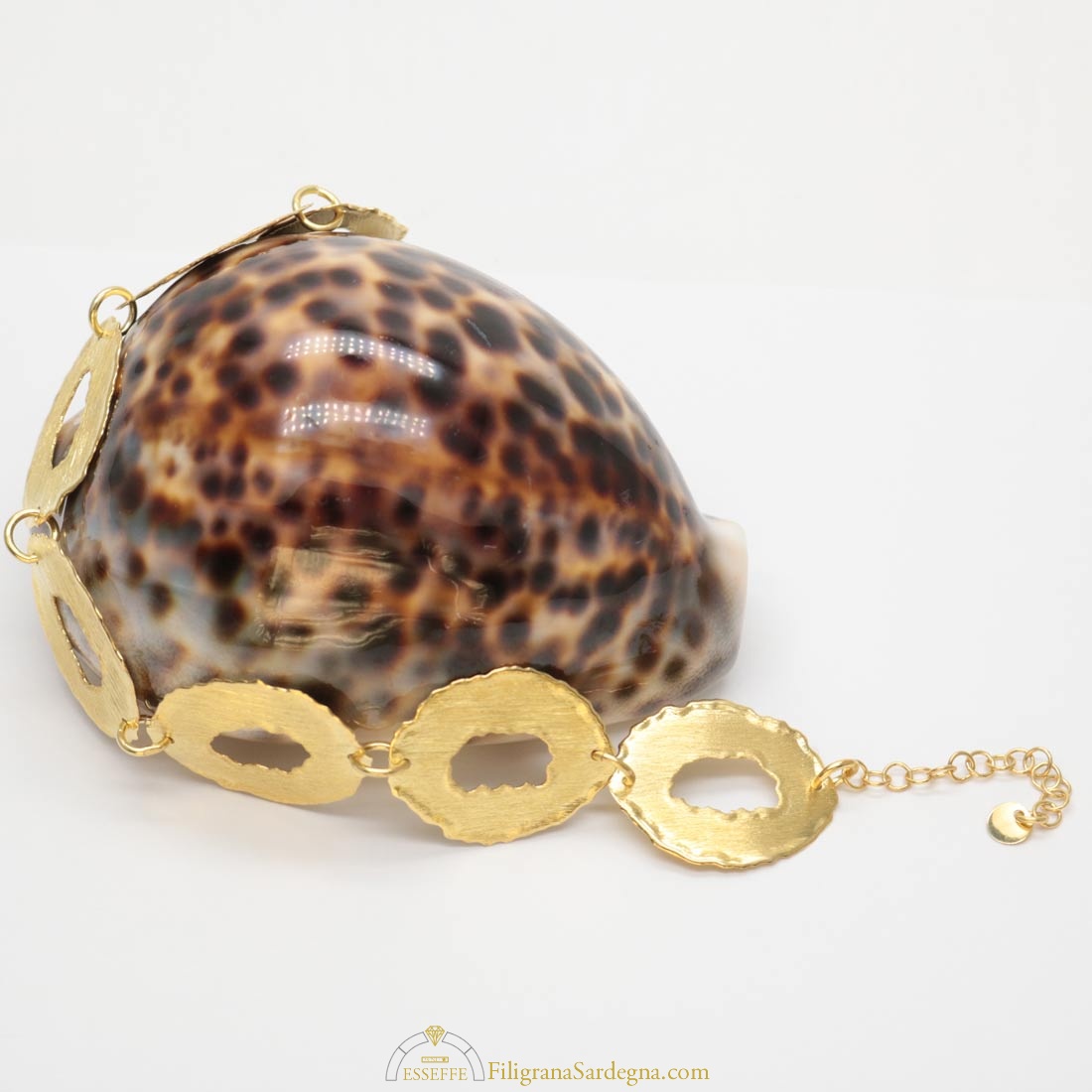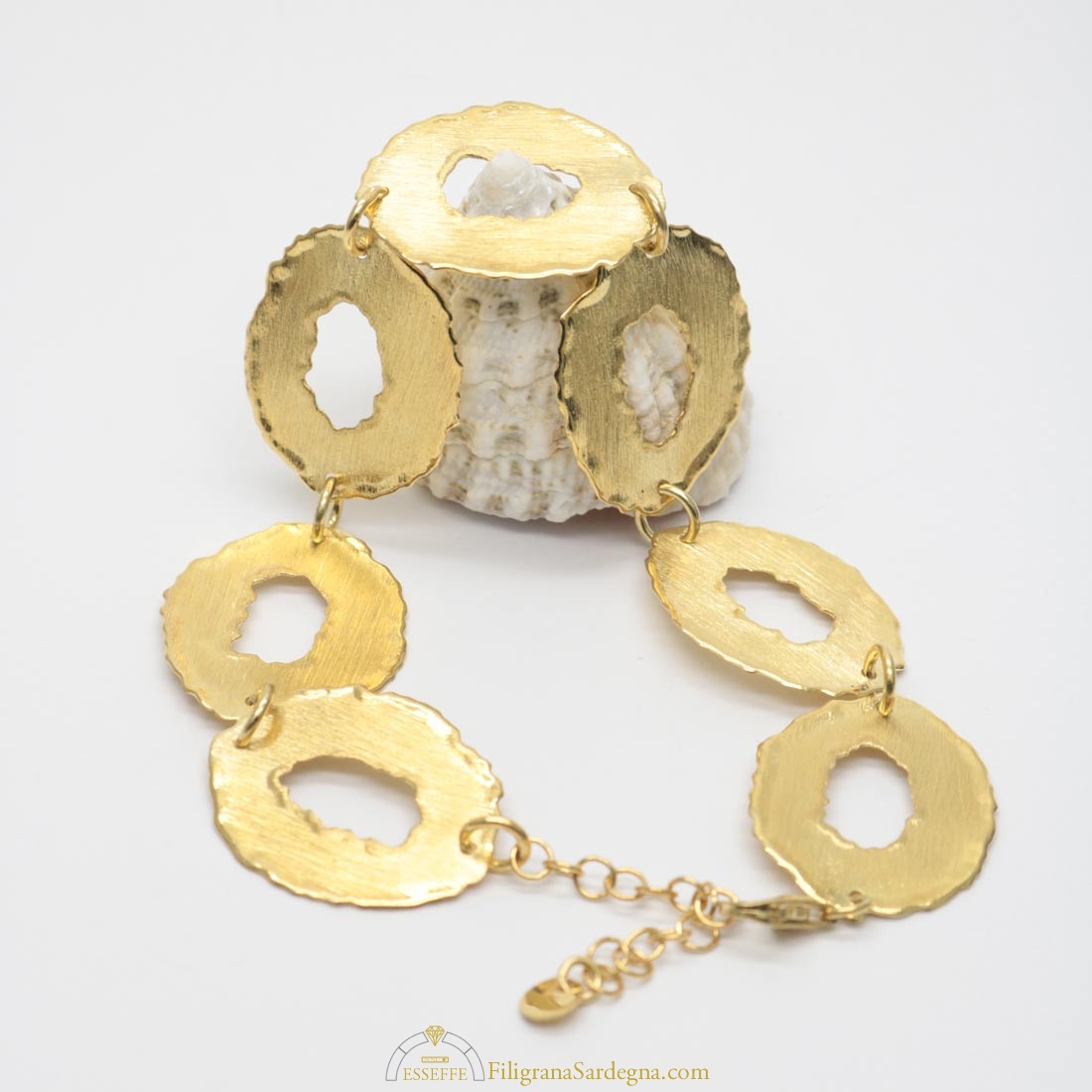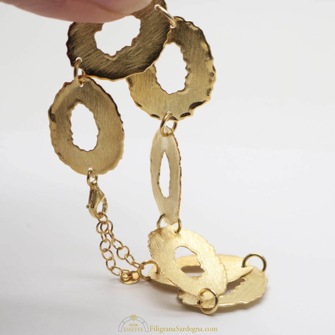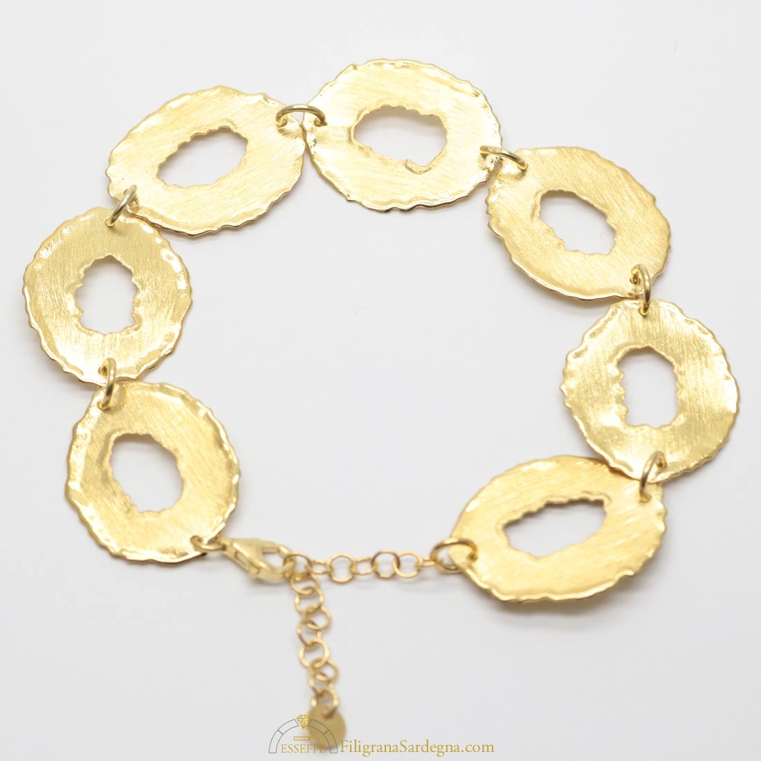 Categoria: bracciale filigrana dorata Lega: argento 925 Lavorazione: filigrana a giorno Dimensioni: 18,5 cm per 1,7 cm