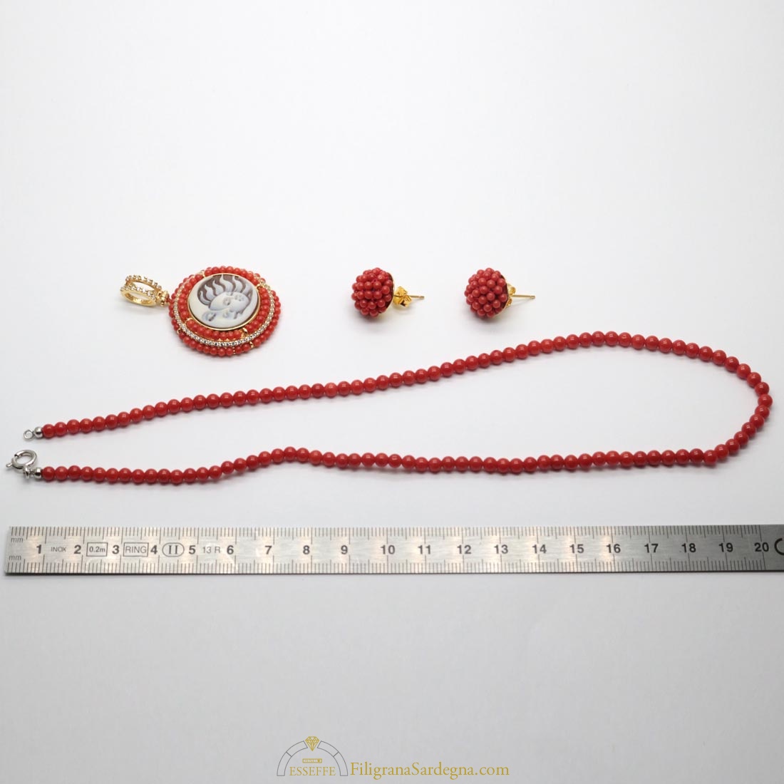 Ciondolo cammeo con corallo e collana