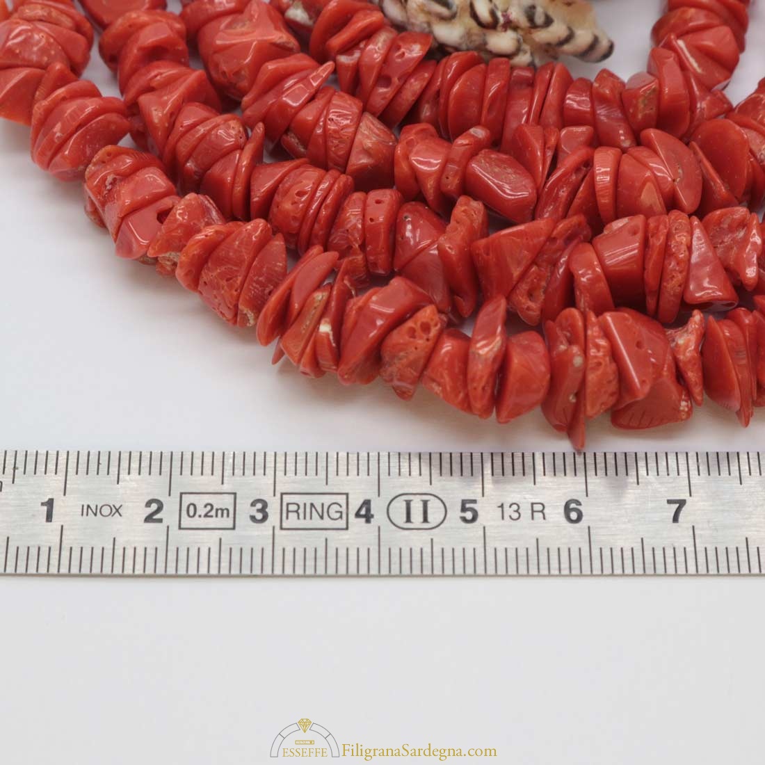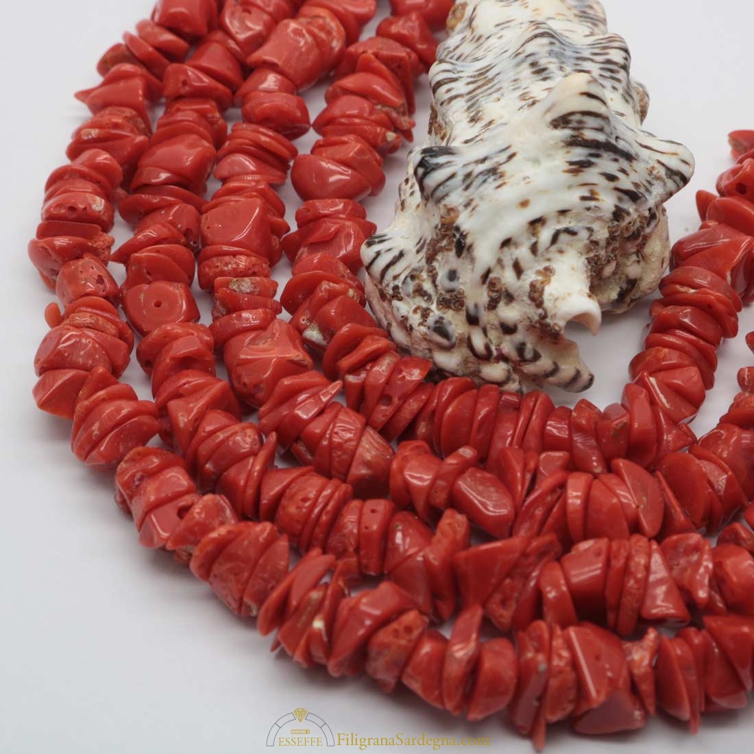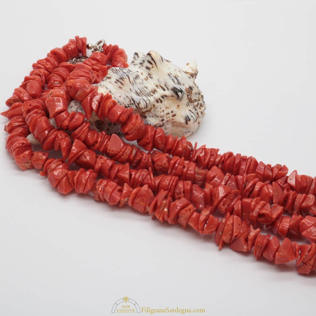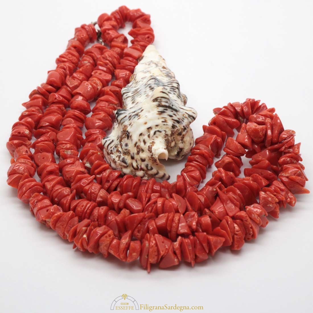 Collana di corallo rosso di Sardegna a grosse chips irregolari, molto belle, gioiello unisex.