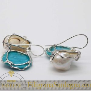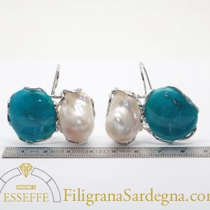 Orecchini d’argento con sasso di turchese naturale e perla barocca