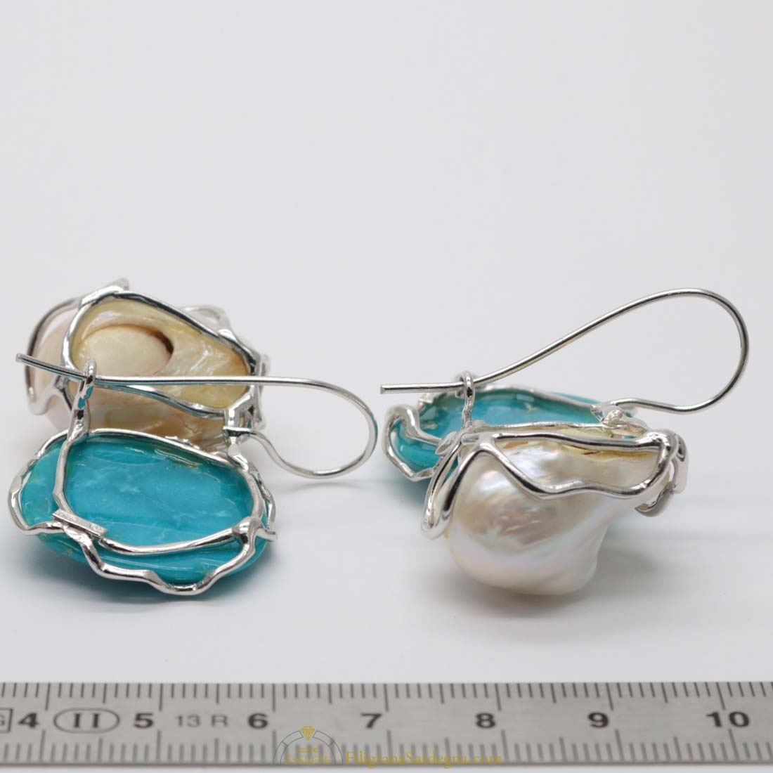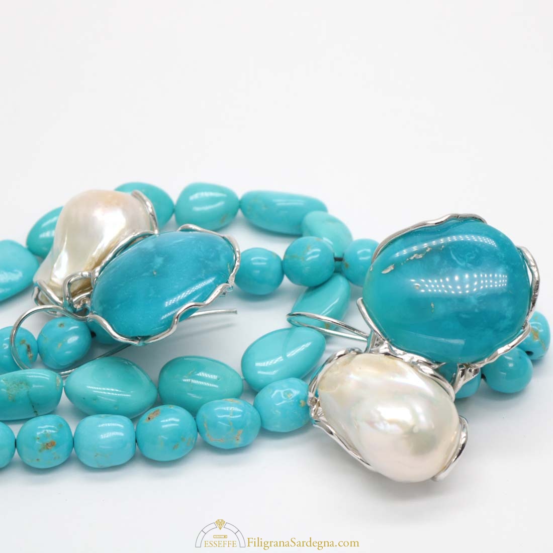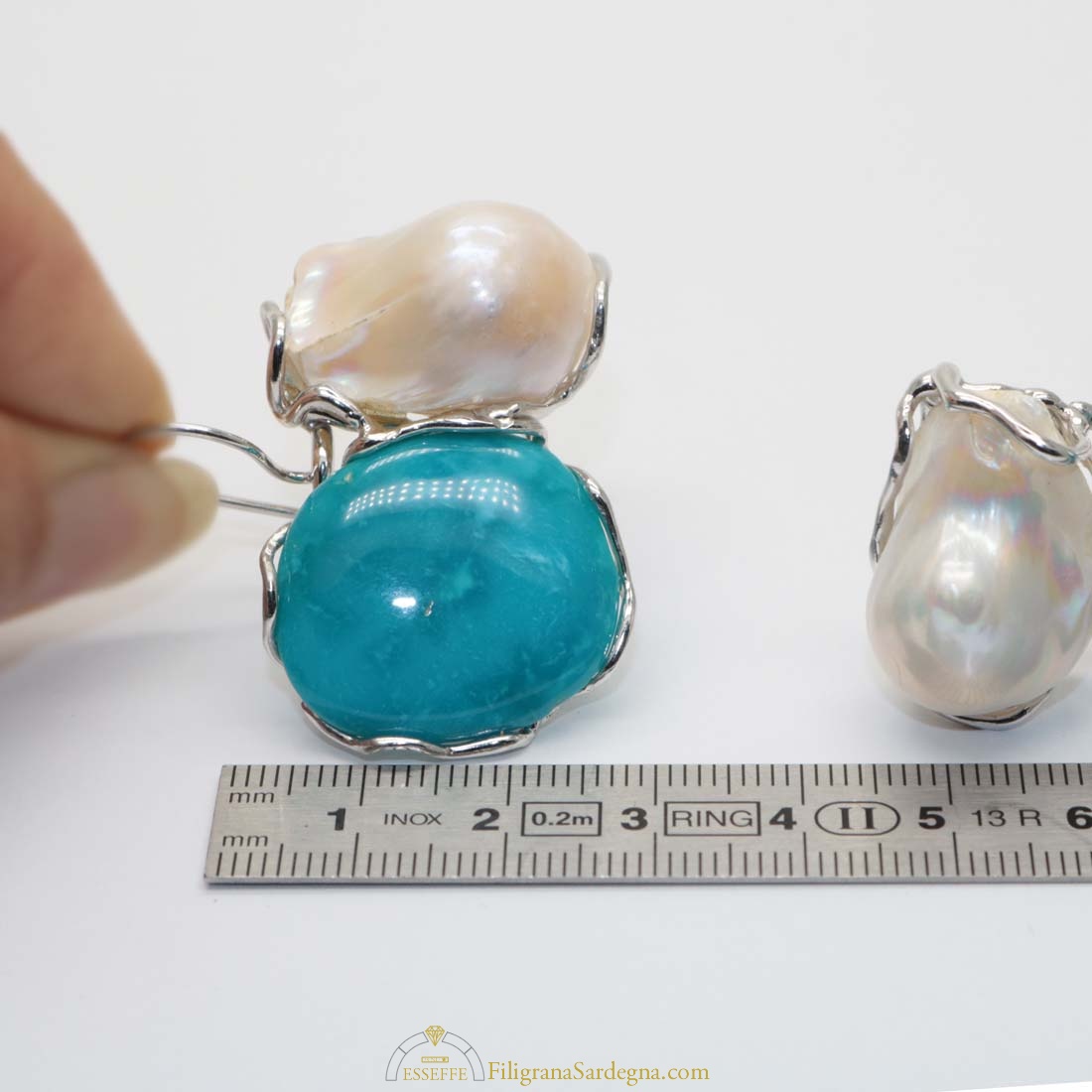 Orecchini d’argento con sasso di turchese naturale e perla barocca
