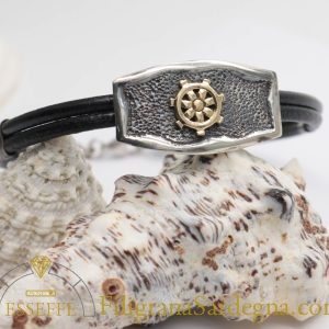 Categoria: bracciale pelle sbalzo e cesello Lega: argento 925 con elemento centrale in oro 750 o argento Tecnica: sbalzo e cesello Laccio: pelle Lunghezza: scrivete la lunghezza desiderata nella nota dell'ordine