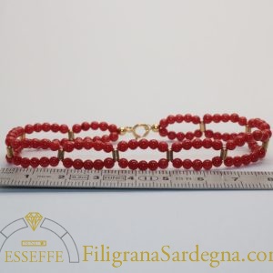 Categoria: bracciale in corallo Lega: oro 750 Peso: 16,9 gr Dimensioni: 19,5 cm per 0,85 cm Pietre: corallo rosso di Sardegna da 8-8,5 mm