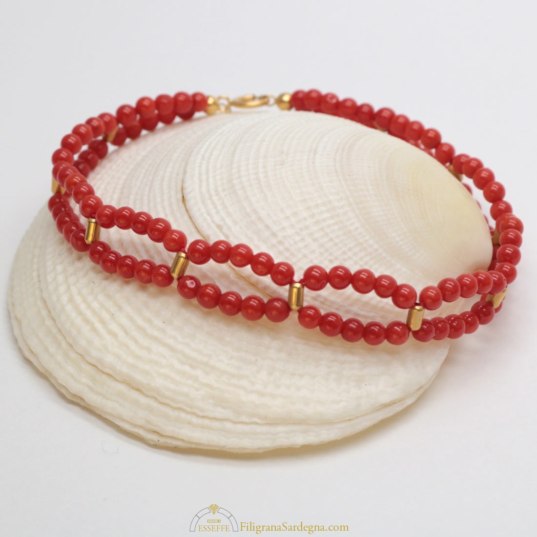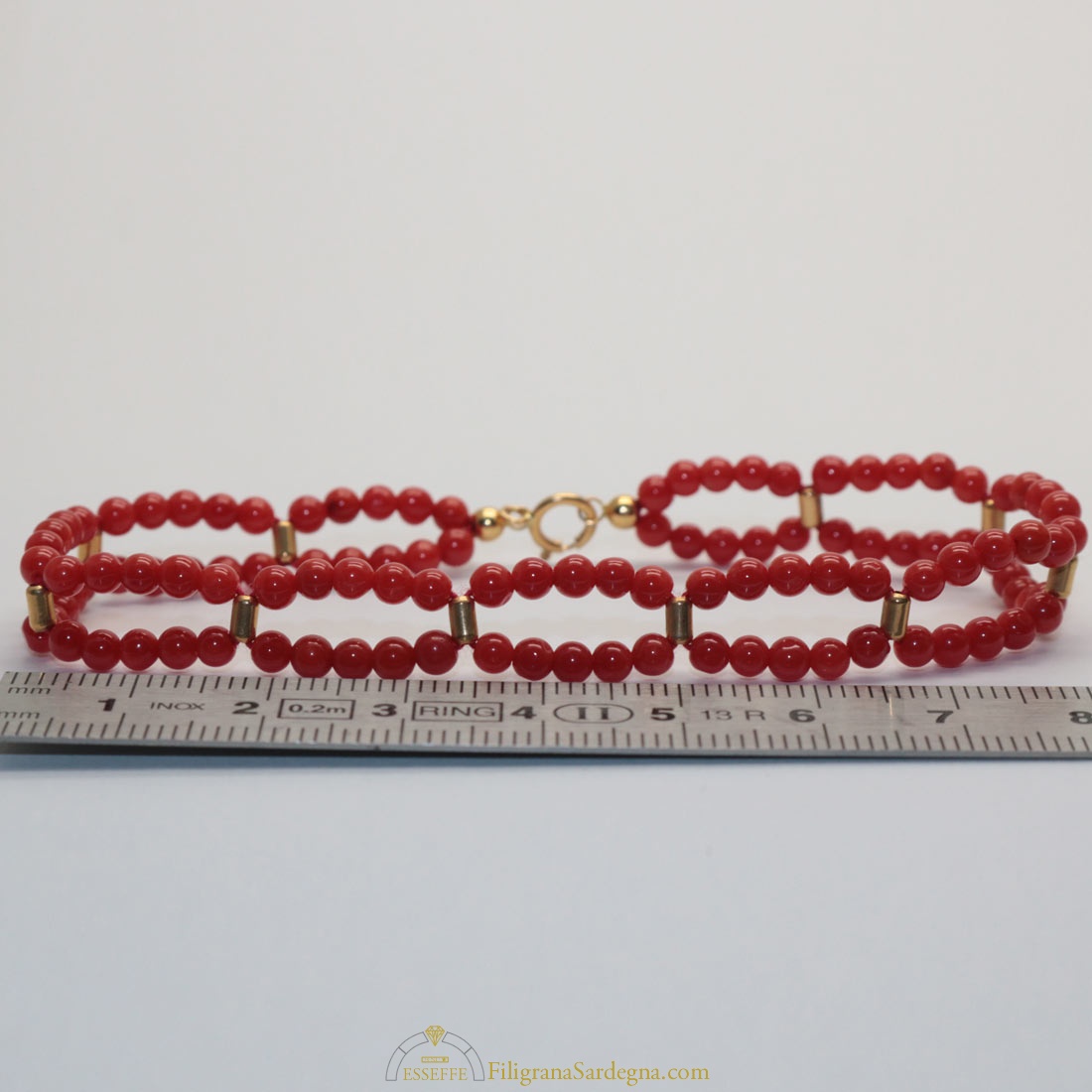 Bracciale corallo rosso e cilindretti d’oro giallo
