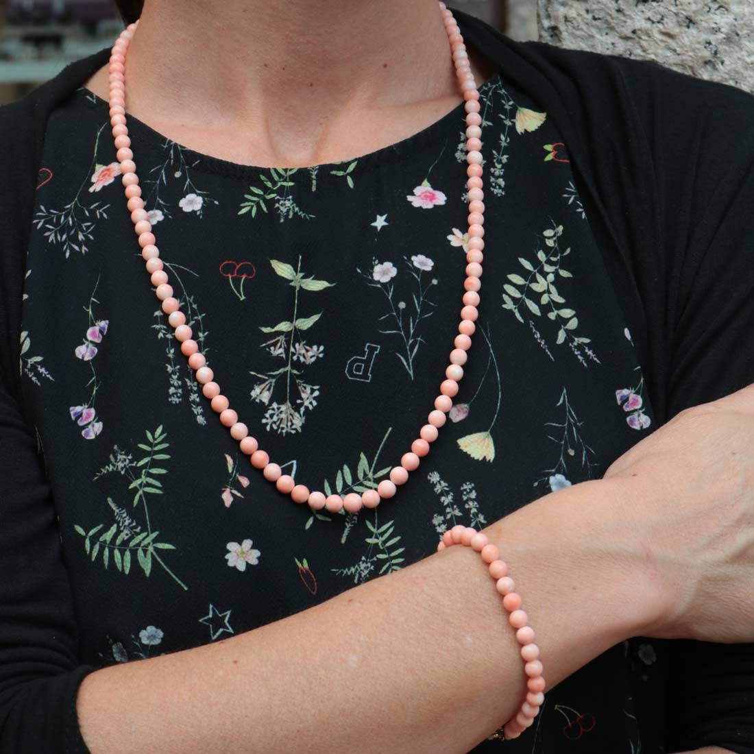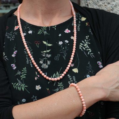 Parure bracciale e collana corallo rosa