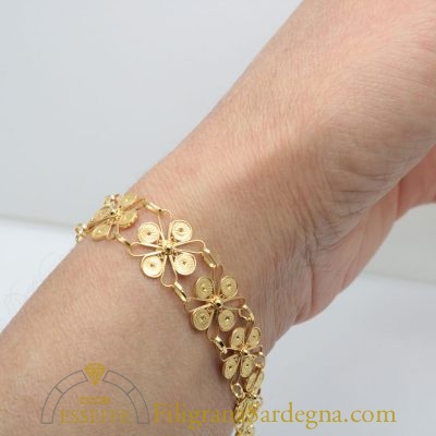 Bracciale in finissima filigrana d’oro con lavorazione a giorno, composto da vari moduli a rosetta.