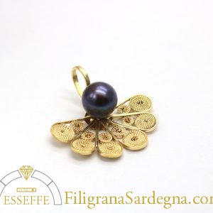 Ciondolo fiore a petali alternati in filigrana d’oro con diamante