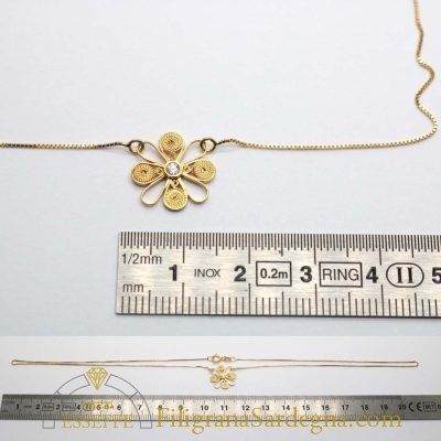 Collana con fiore a petali alternati in filigrana d’oro e diamante