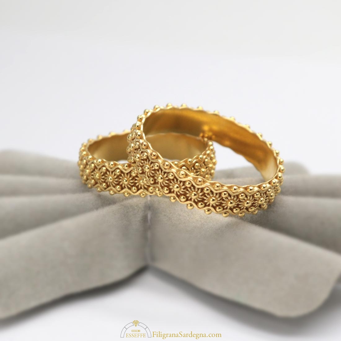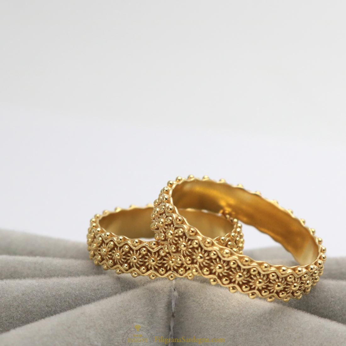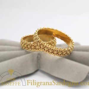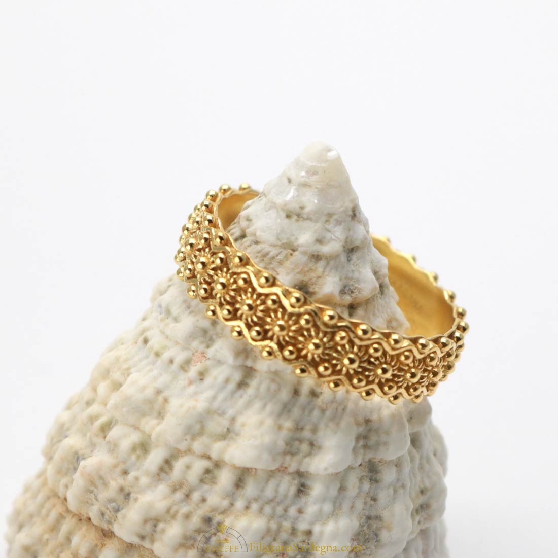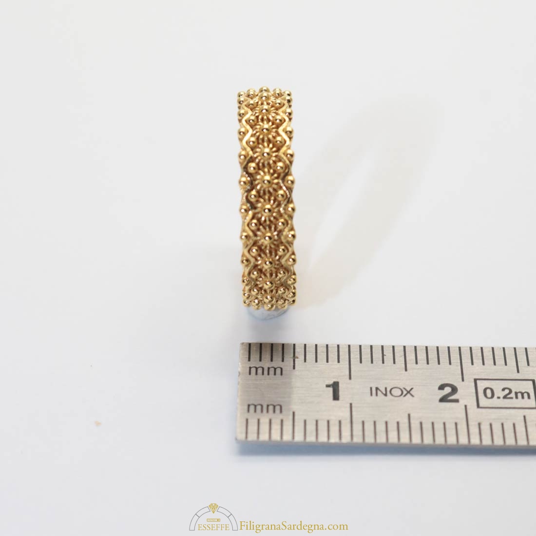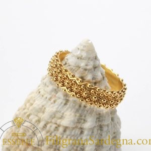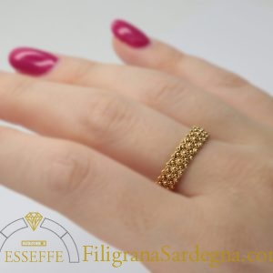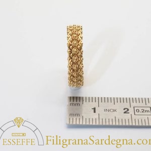 Categoria: fede sarda - anello in filigrana Lega: oro 750 Lavorazione: nido d'ape Peso: 2,8 gr per la misura 15 Altezza max fascia: 0,8 cm