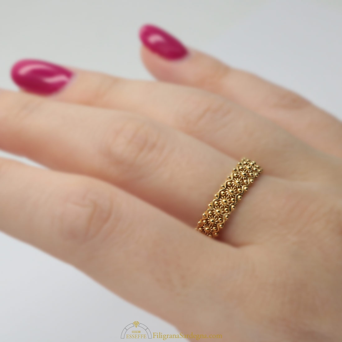 Anello d’oro a nido d’ape (tre file) fede sarda