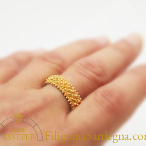 Anello a fascia in filigrana d’oro \ fede sarda a nido d’ape (sei file)