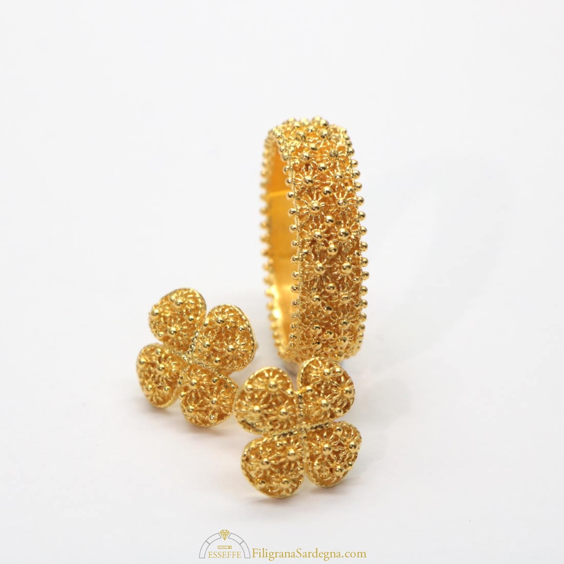 Fede sarda in filigrana d’oro a nido d’ape (due file)
