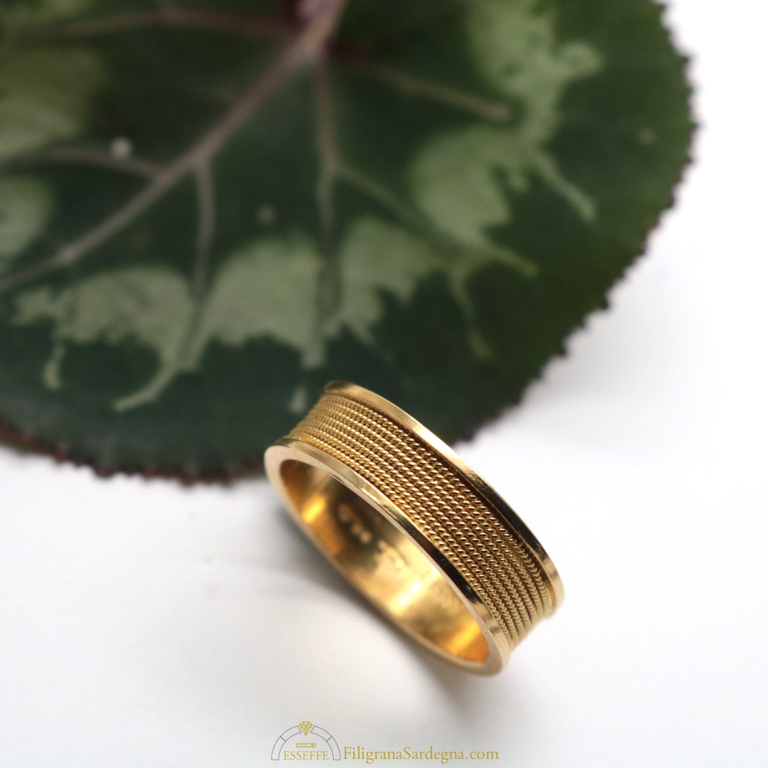 Anello / fede sarda in oro con filigrana avvolta a tutto giro, fascia di altezza media, nuovo modello più strutturato.