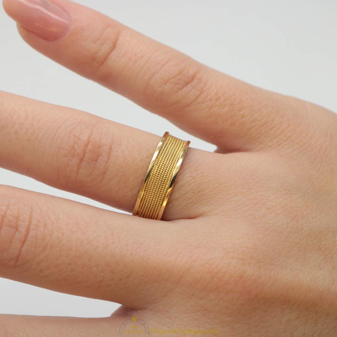 Anello a fascia in filigrana d’oro \ fede sarda a nido d’ape (sei file)