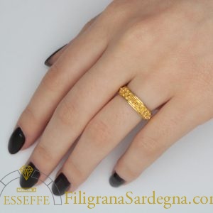 Categoria: fede sarda -  anello in filigrana Lega: oro 750 Lavorazione: nido d'ape Peso: 2,8 gr per la misura 15 Altezza max fascia: 0,8 cm