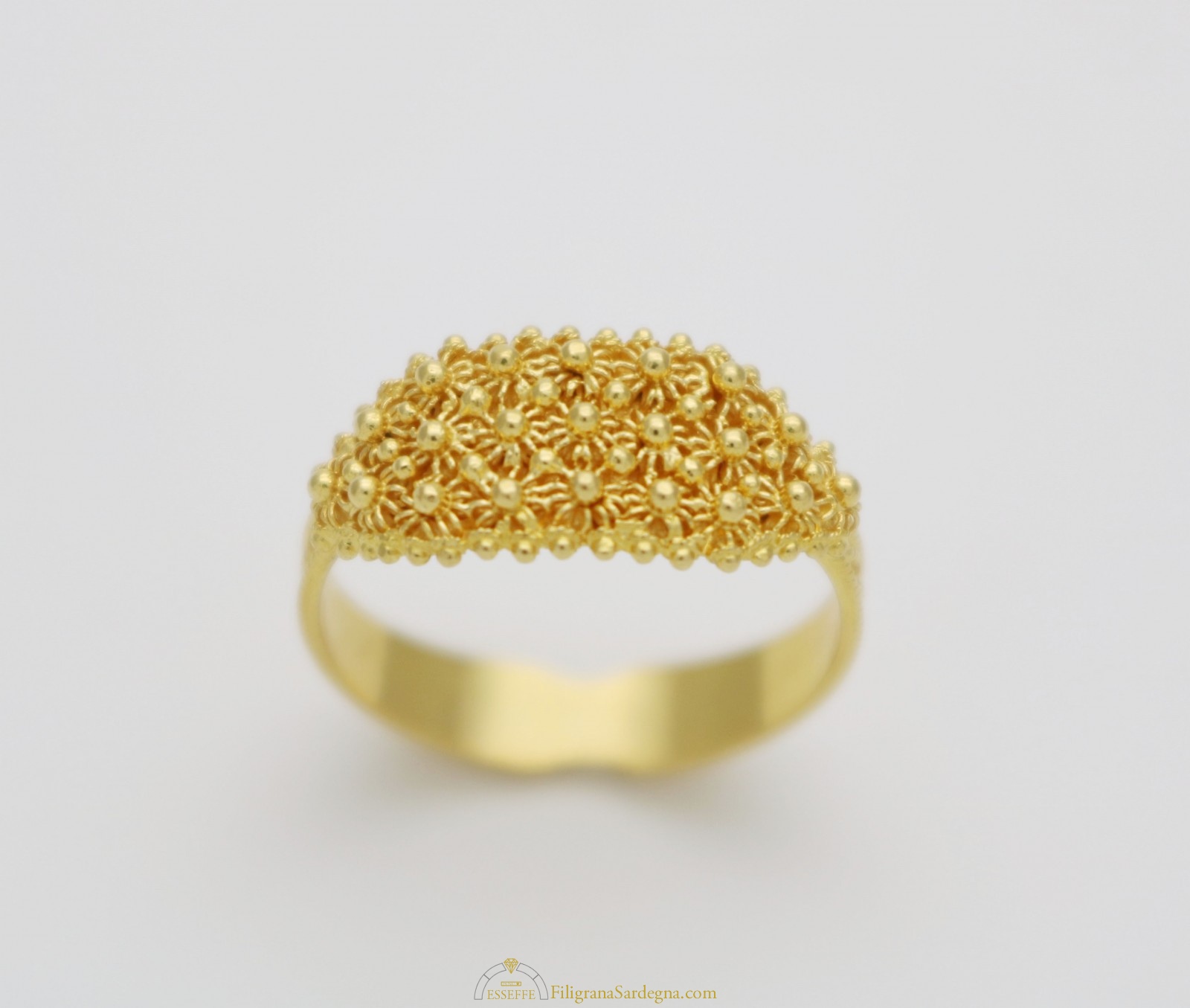 Anello in filigrana d’oro (fede sarda) con lavorazione a nido d’ape composta da ragnetti e micro sfere.