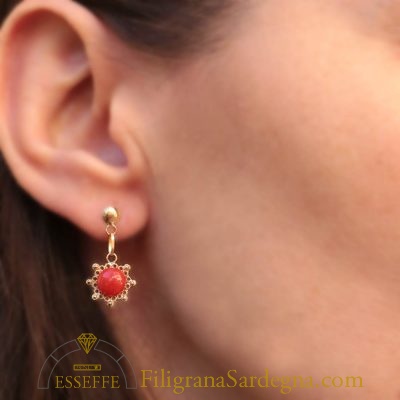 Fiori pendenti in filigrana d’oro e corallo di Sardegna
