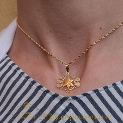 Ciondolo Sardegna in oro con rosetta in filigrana