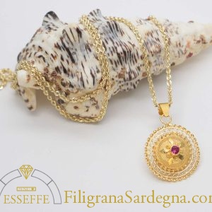 Ciondolo in filigrana d’oro con rosetta al centro