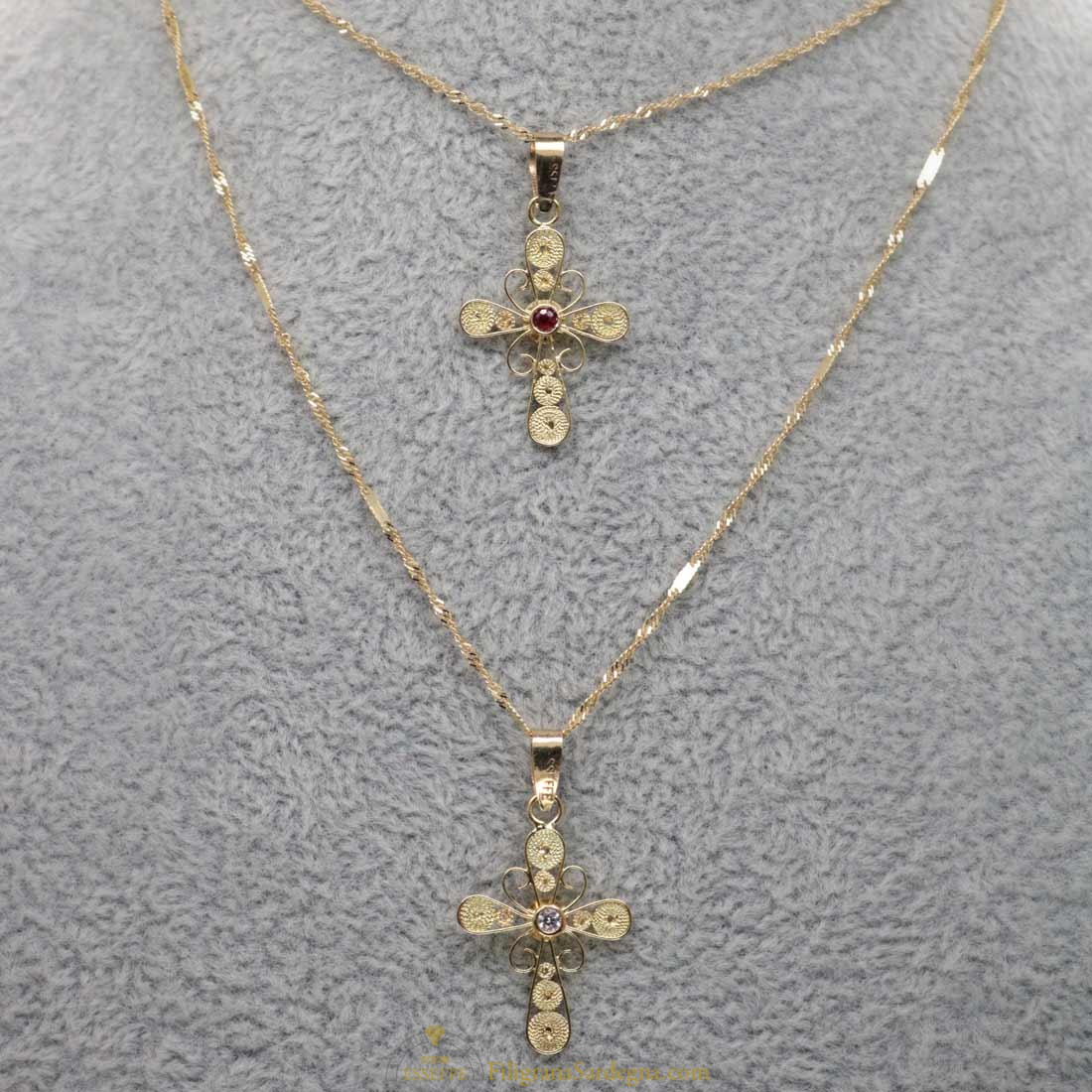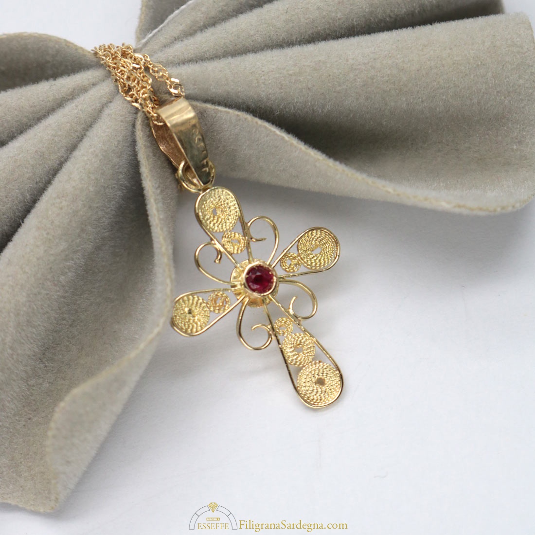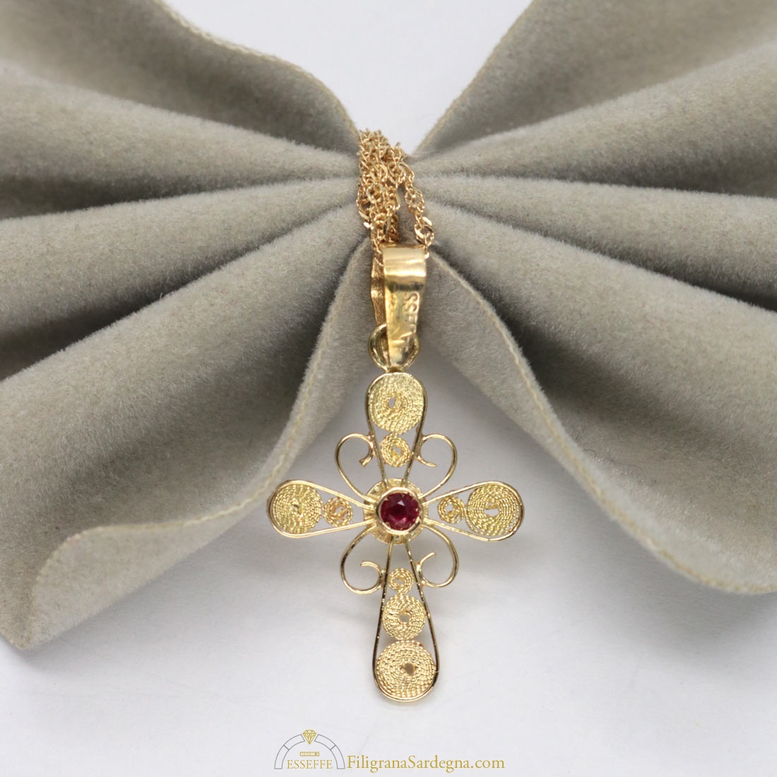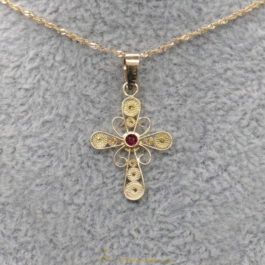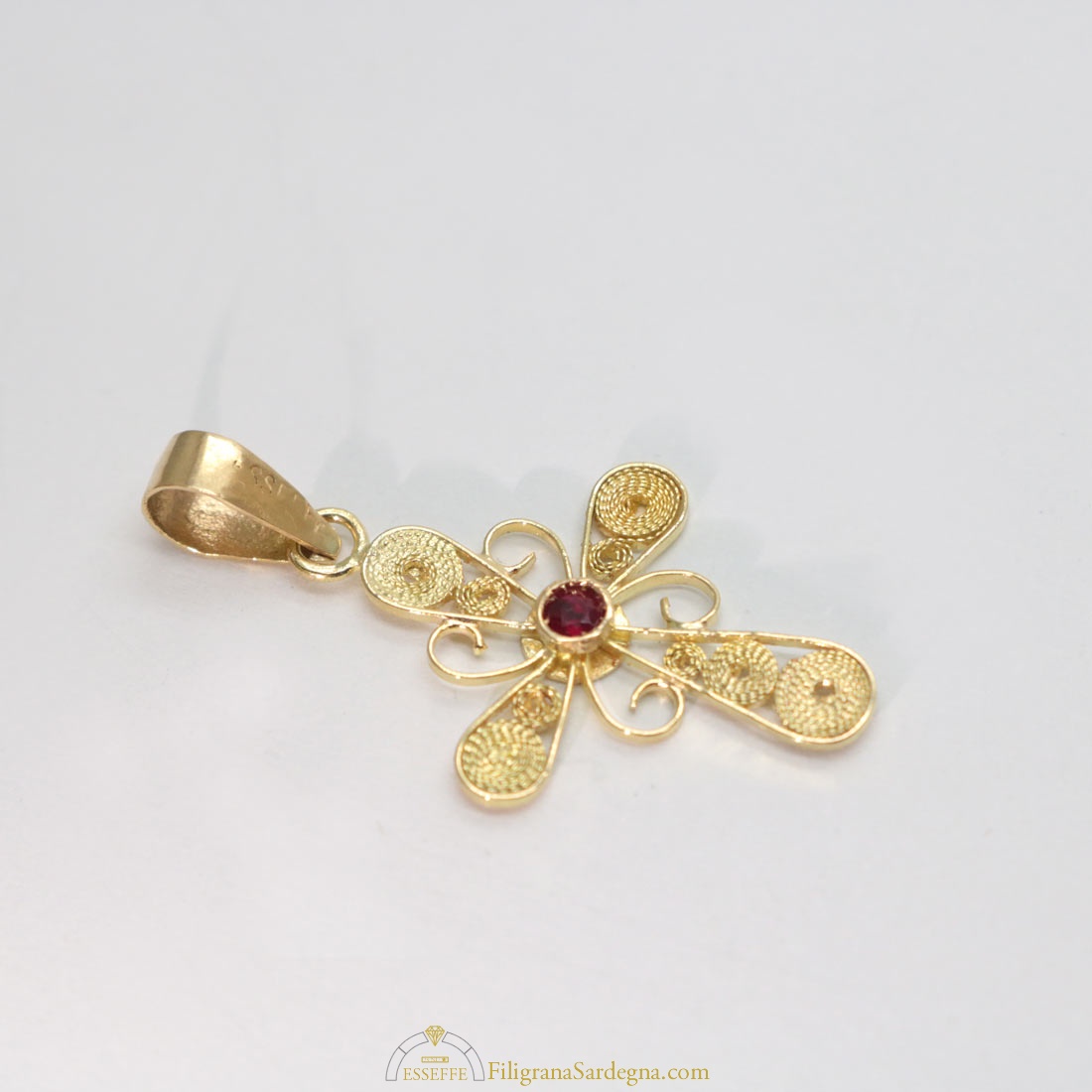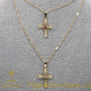 Croce filigrana oro con rubino