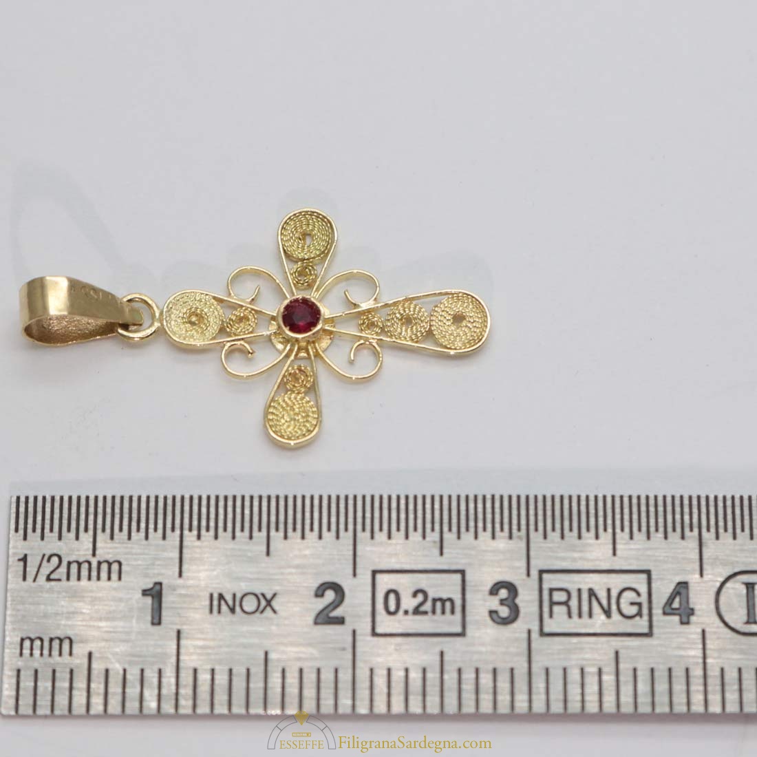 Croce in filigrana d’oro con sintesi di rubino