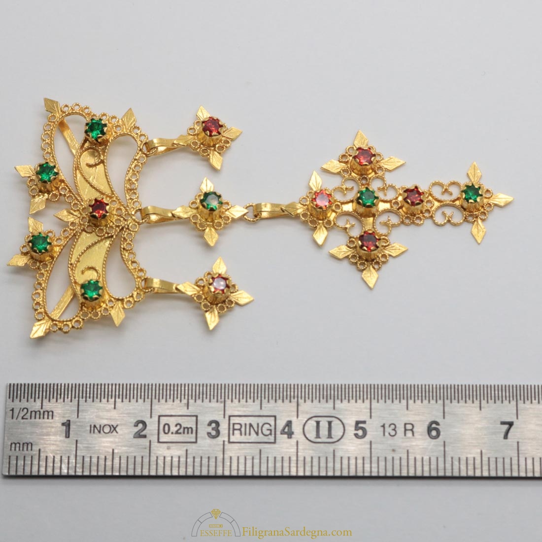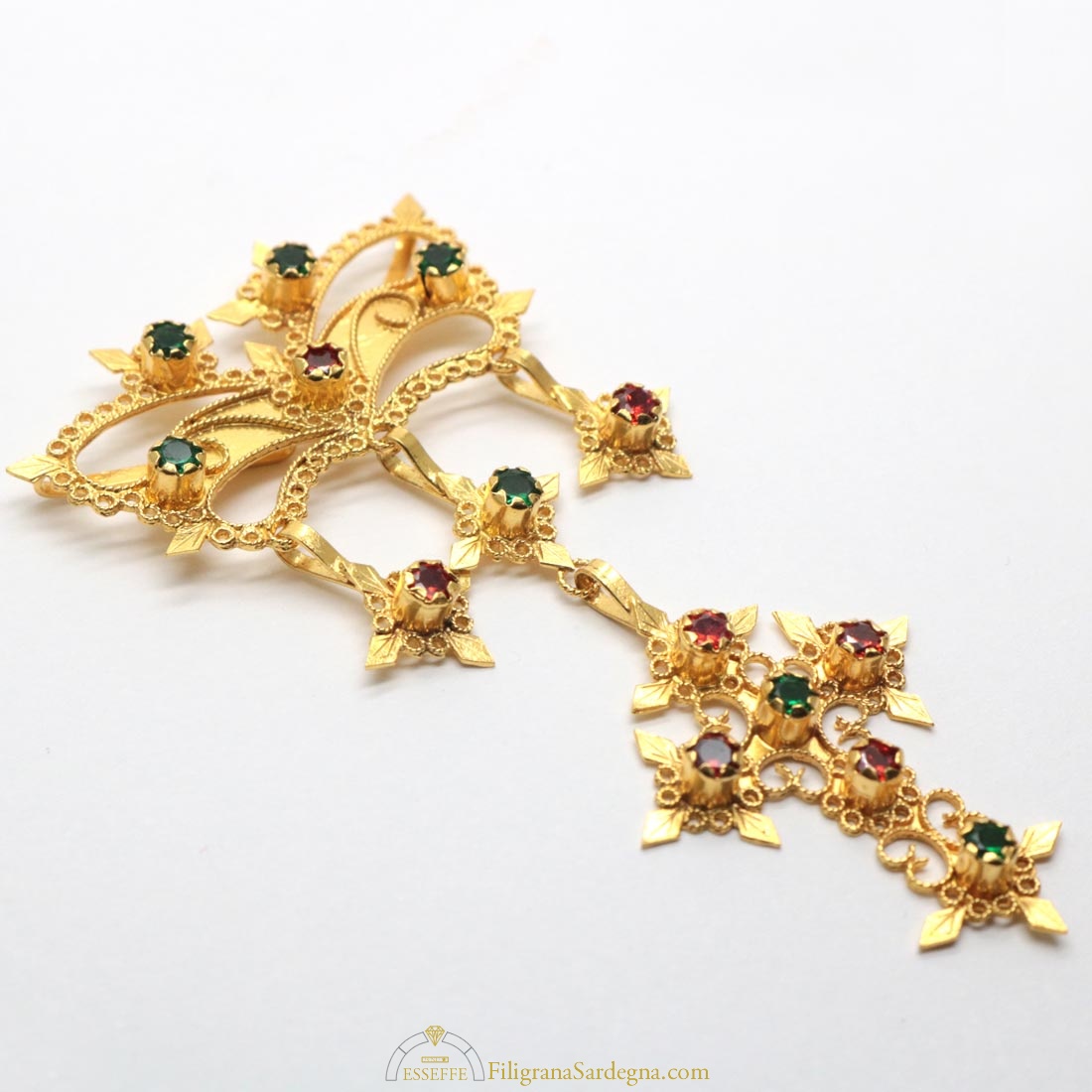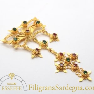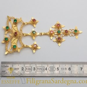 Realizziamo zoighe di misura più grande e più piccola, contattateci anche su Whatsapp al 3472444346. Categoria: Pendente del costume tradizionale Dorgalese - ciondolo in filigrana Lega: oro 750 Lavorazione: filigrana Peso: 10 gr Dimensioni: 4,5 cm per 7 cm Pietre: nano cristalli rossi e verdi