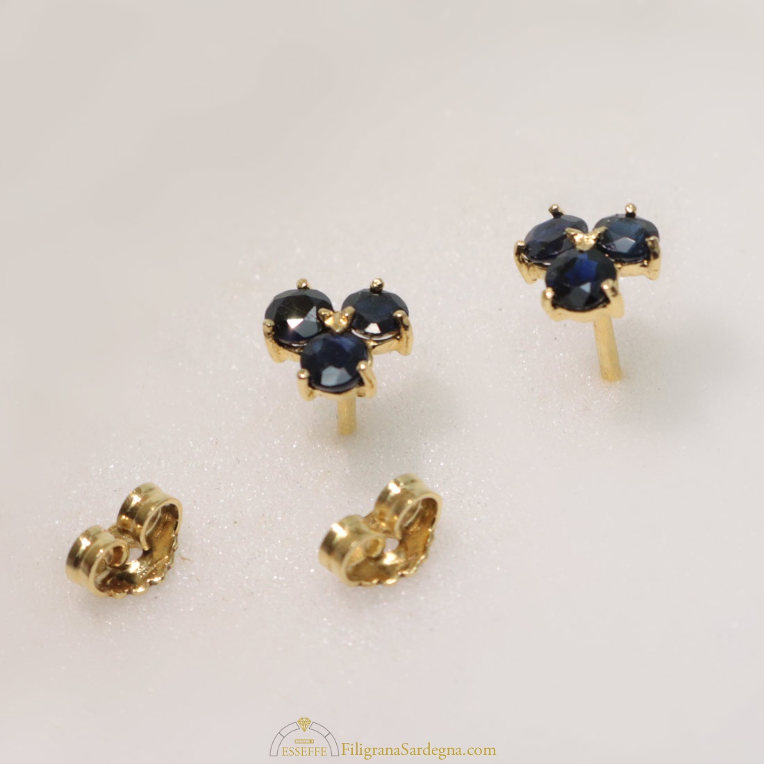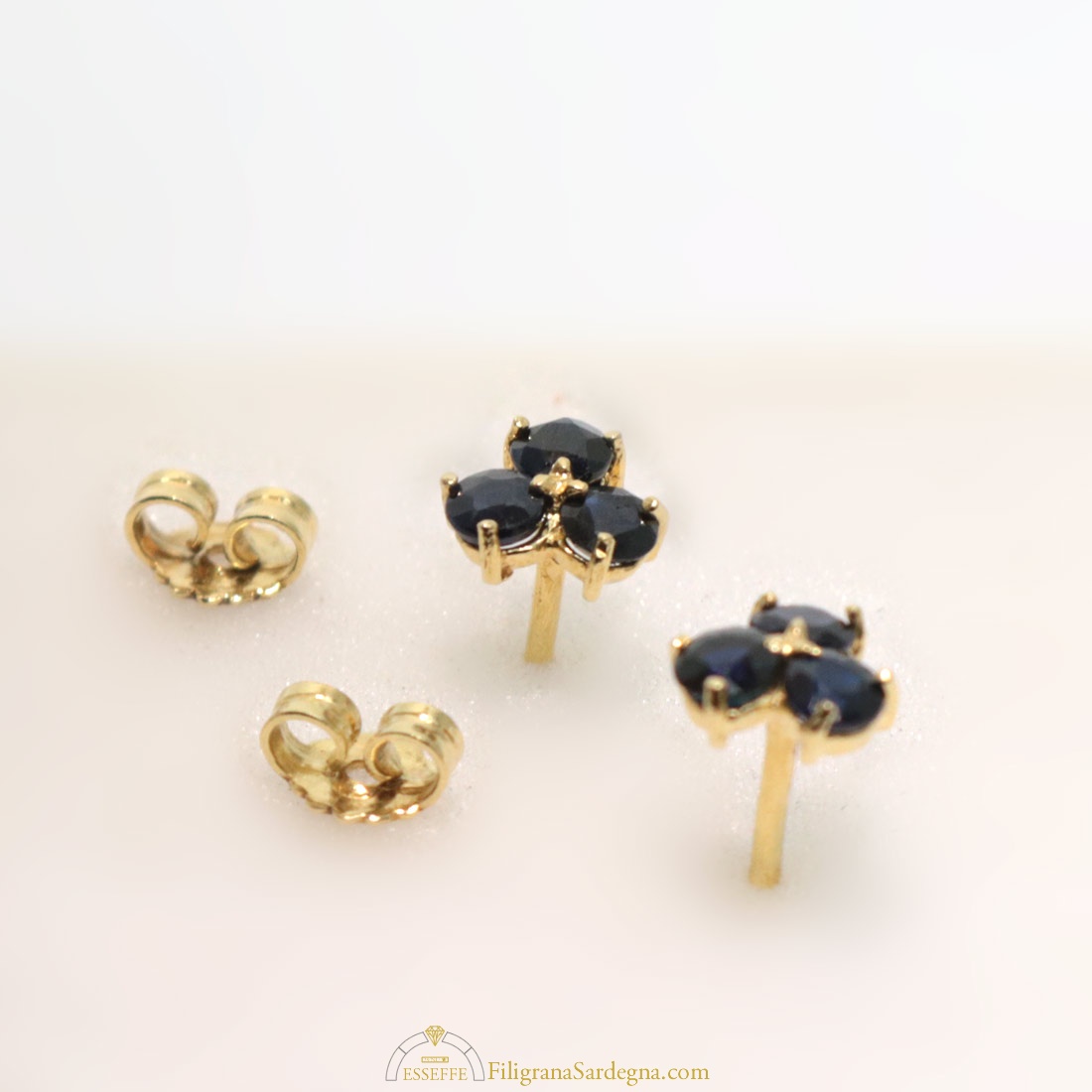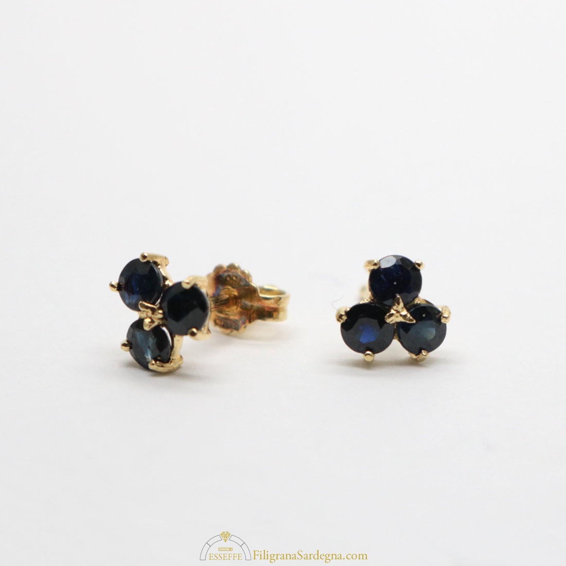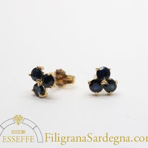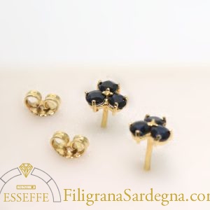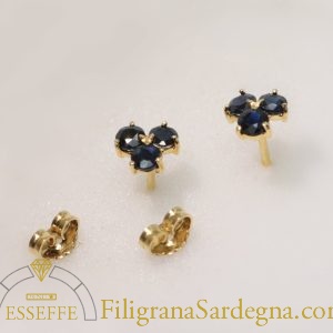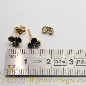 Categoria: orecchini filigrana oro Lega: oro 750 Peso: 3 gr circa Diametro fiore: 1,5 cm Pietra: zaffiro Ceylon Zaffiri: 1 ct totale