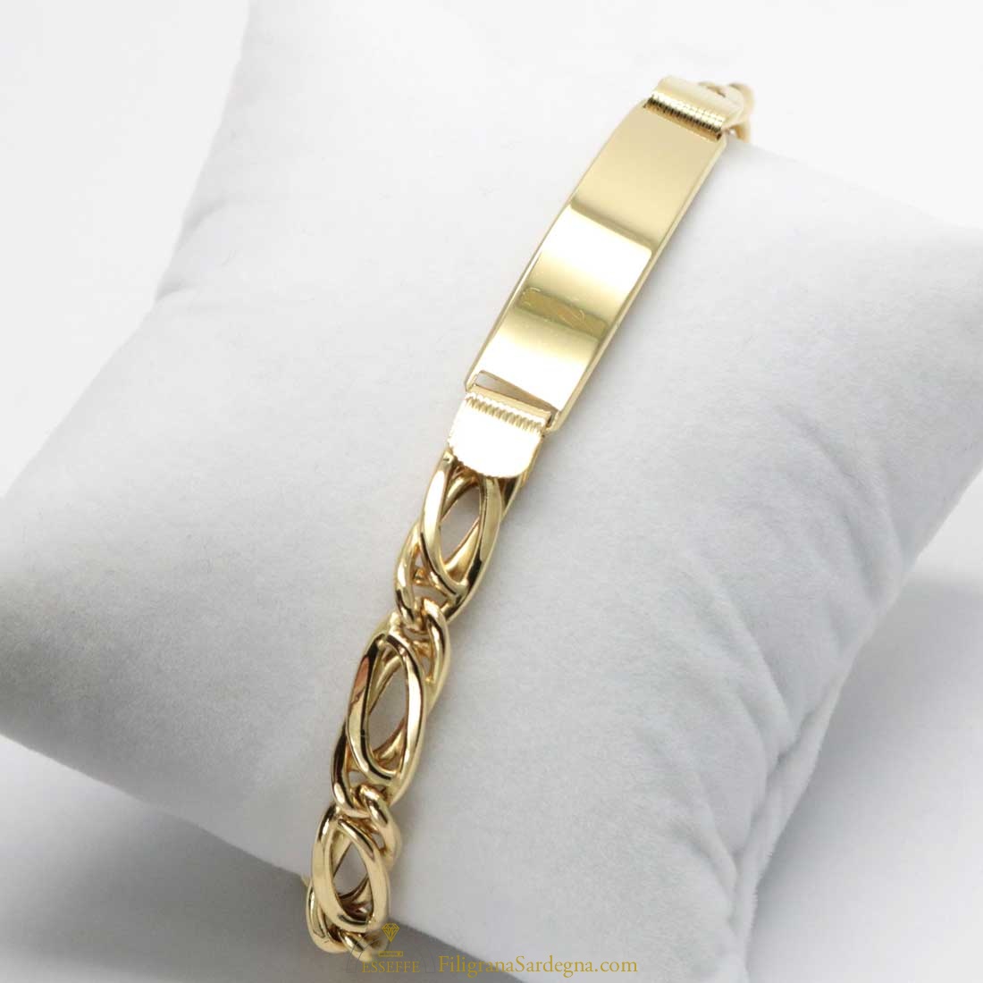 Un classico questo bracciale in oro giallo, bracciale maschile con piastra lucida su cui si pùò incidere un nome o una data.