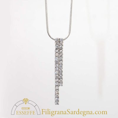 Collana in oro bianco modello coda di topo con ciondolo molto luminoso anch’esso in oro bianco con zirconi.