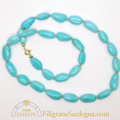Collana di turchesi naturali a sasso con piccoli intercalari d’oro