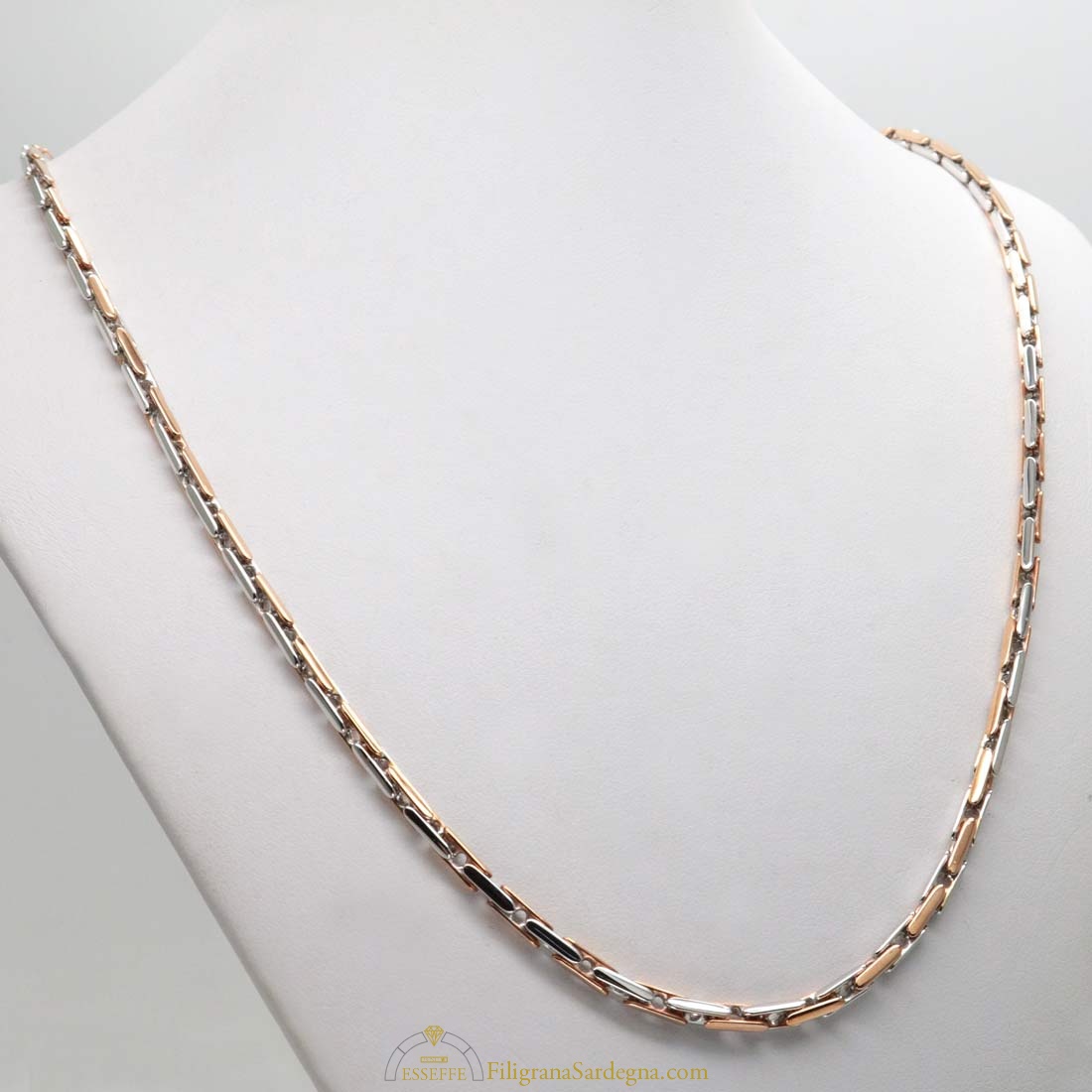 Splendida collana da uomo in oro rosso e bianco da 50 cm.