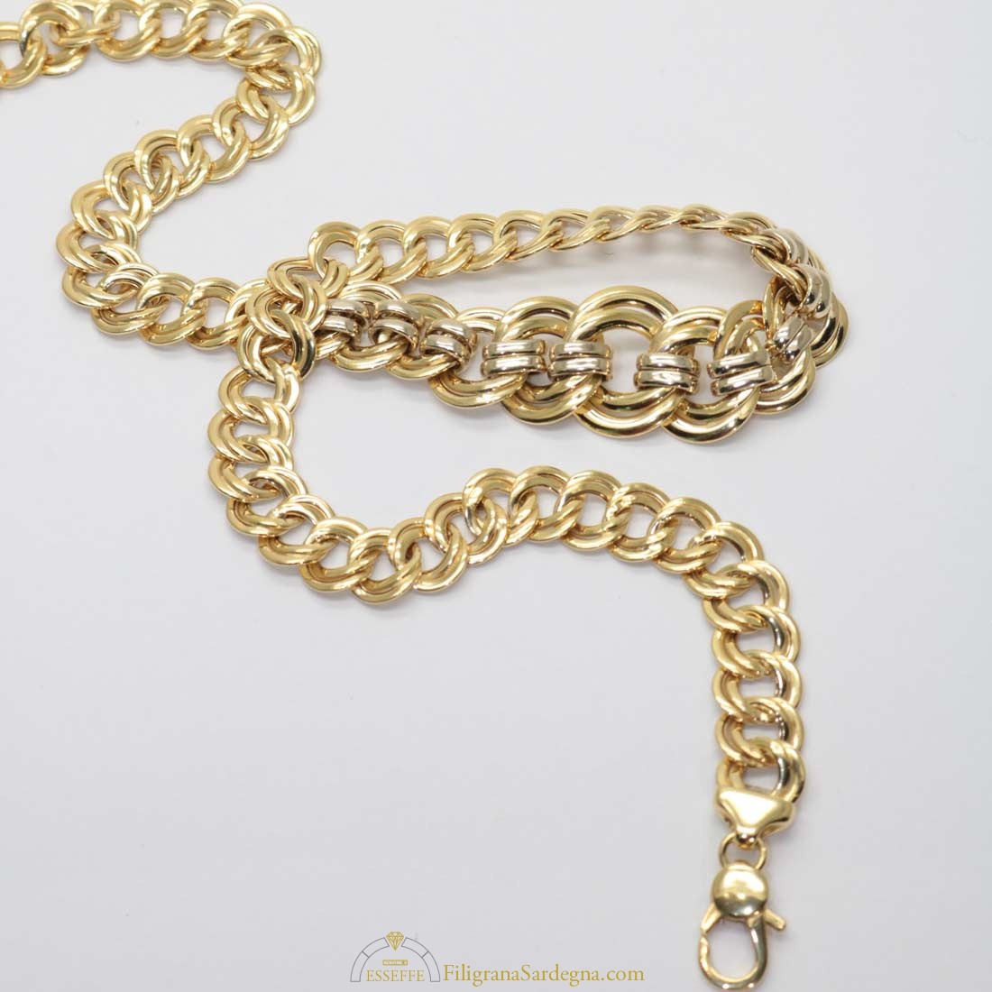 Categoria: collana oro bicolore Lega: oro 750 Peso: 7 gr Lunghezza: 47 cm Dimensione intercalari "infinito": 2,6 cm per 1,6 cm